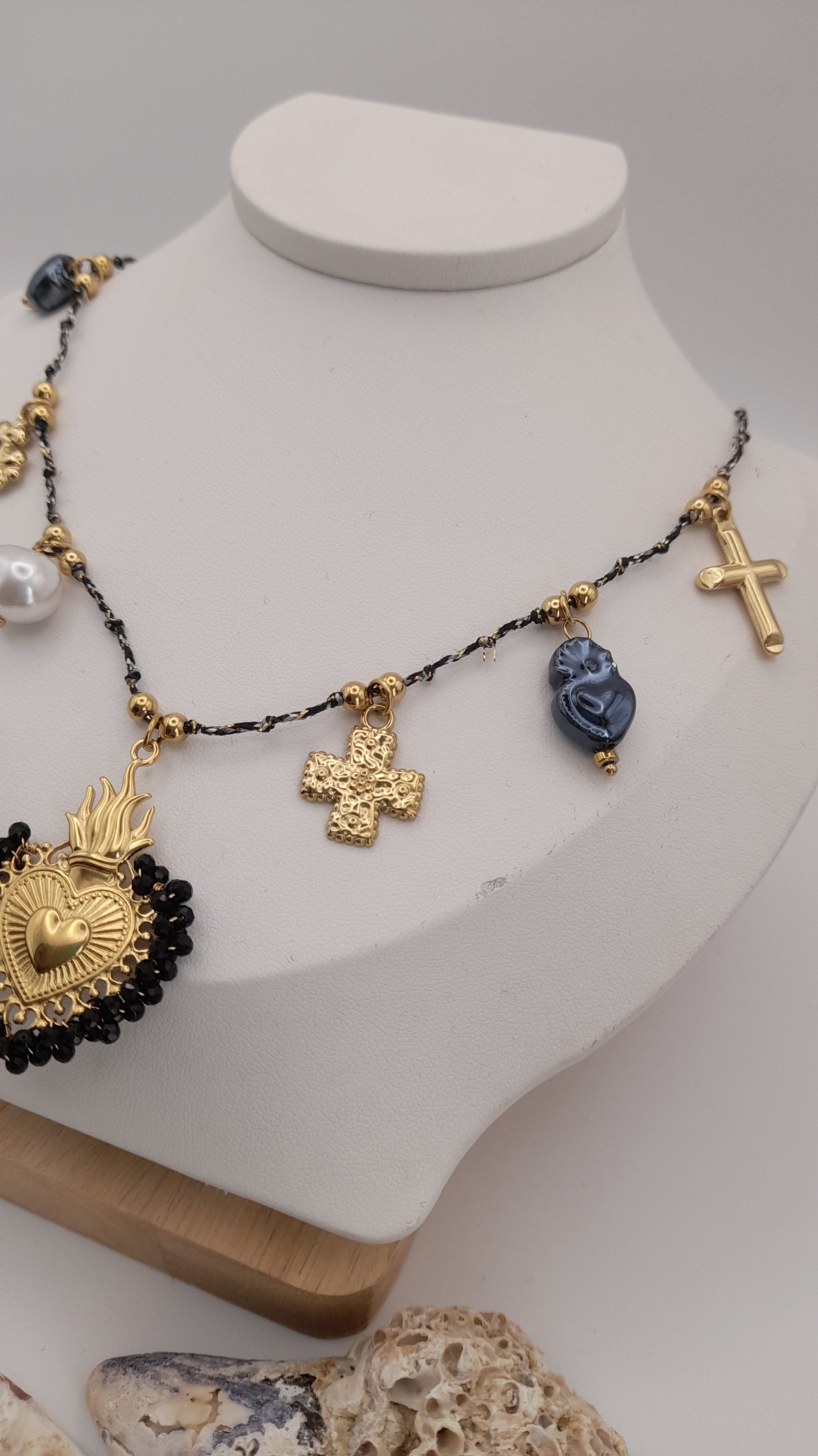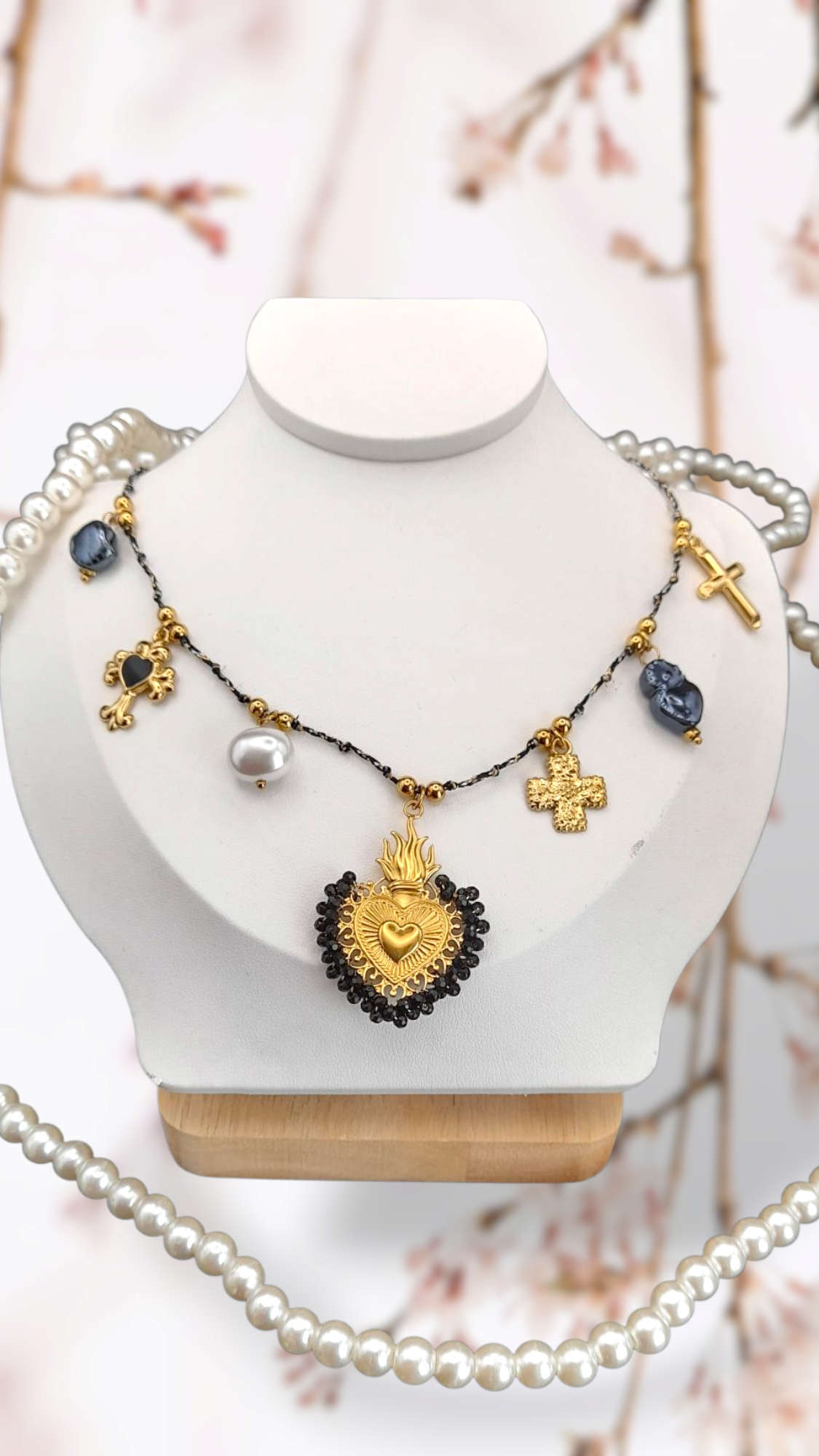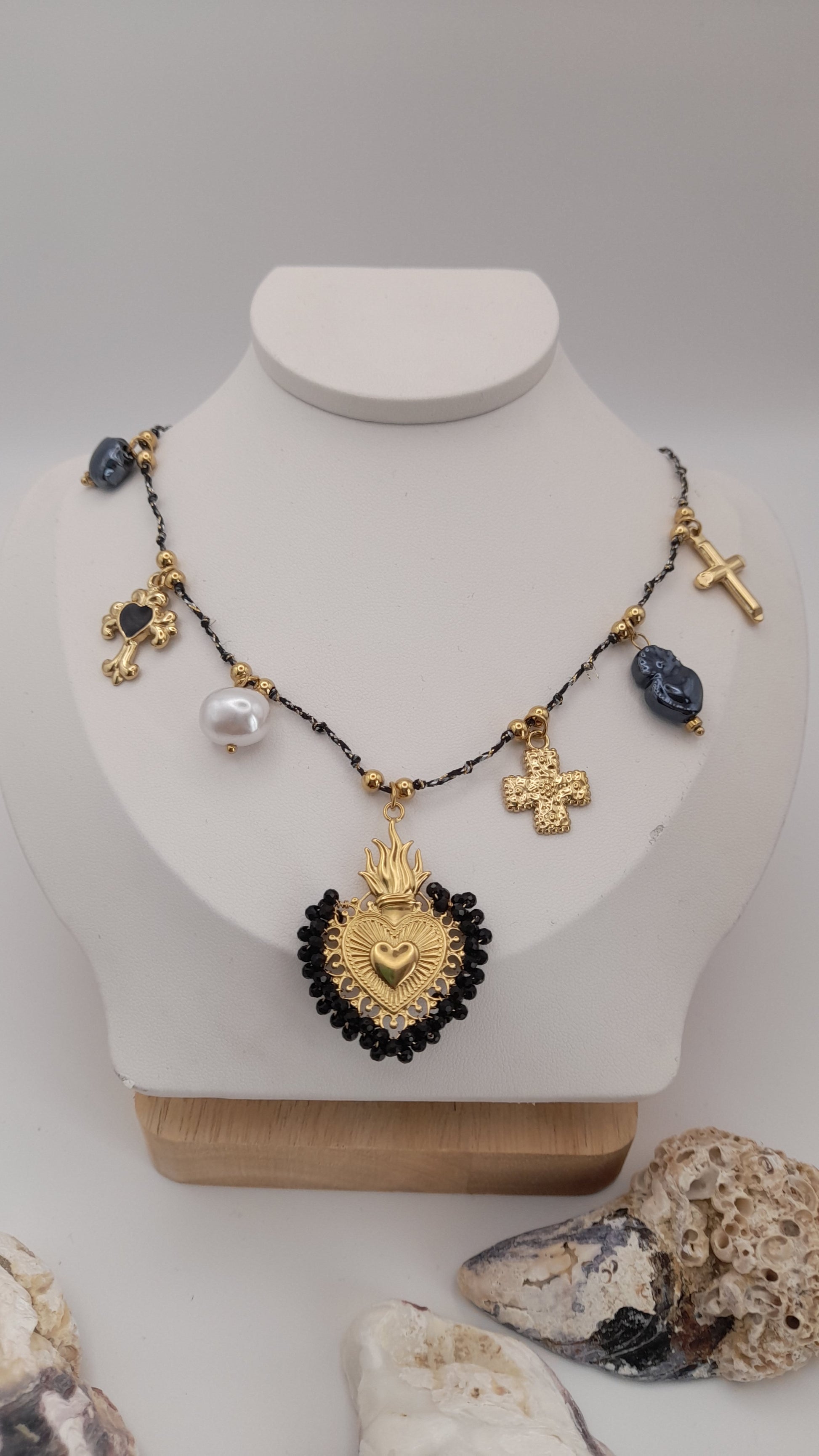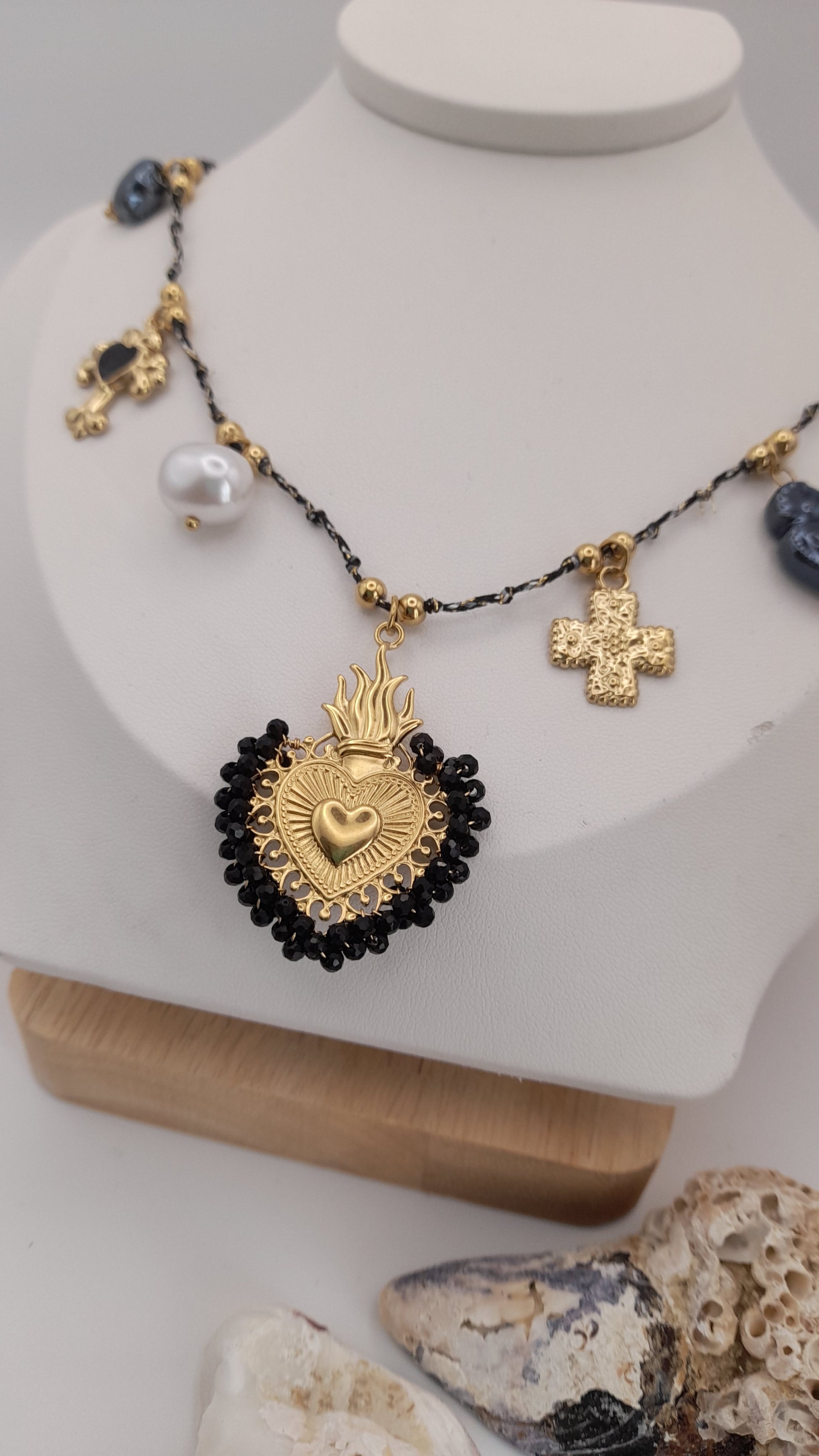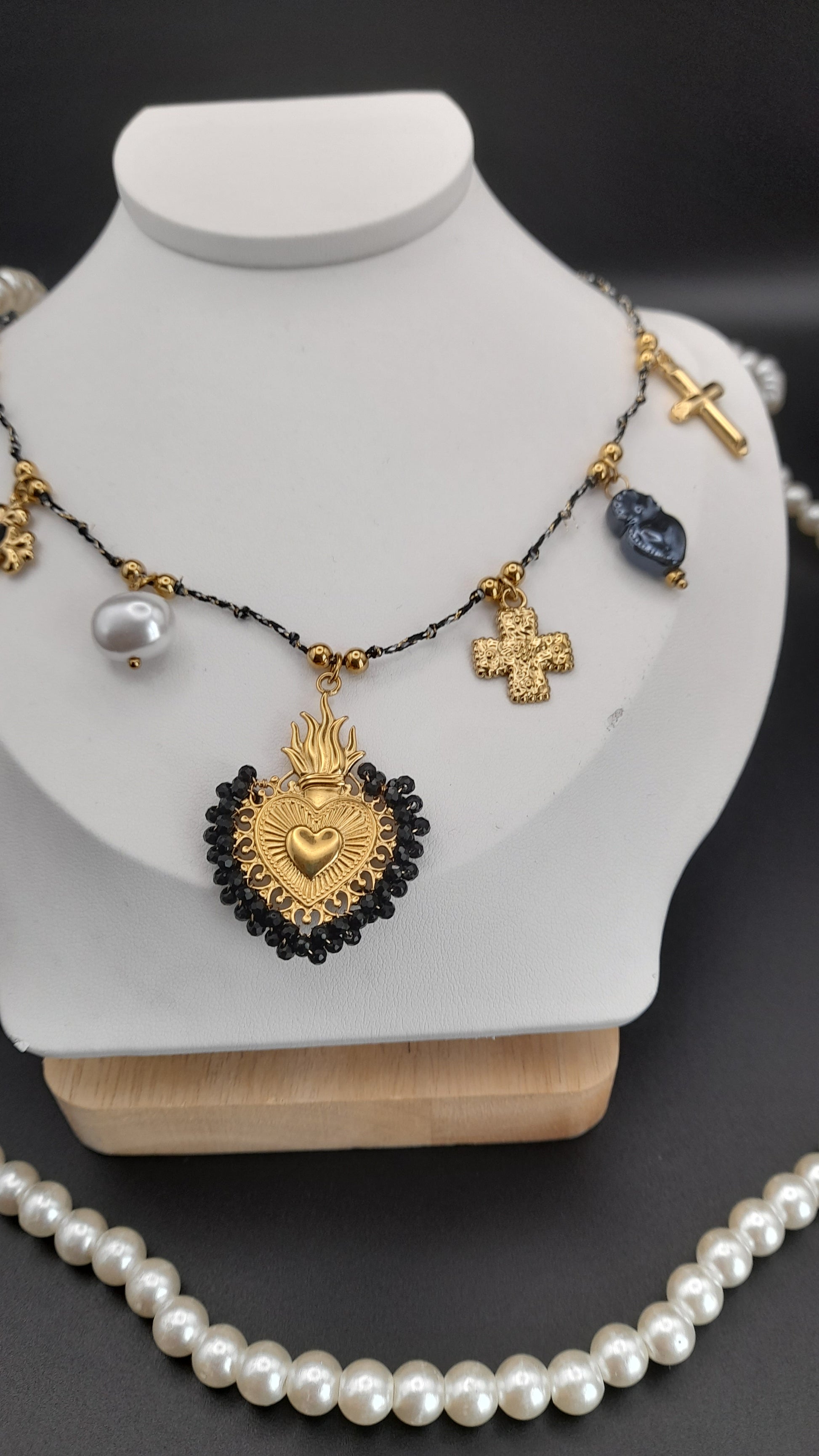 Collana con Sacro Cuore in Acciaio inossidabile color Oro.