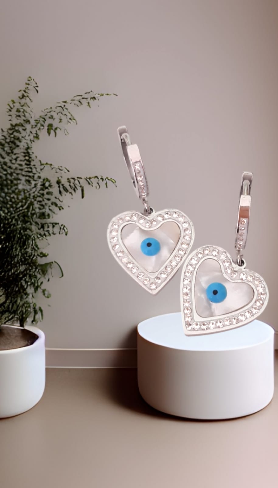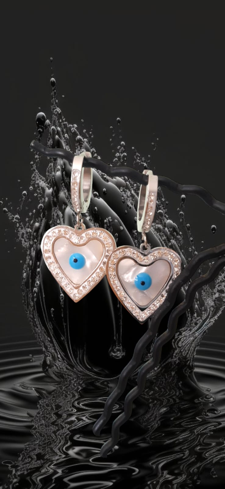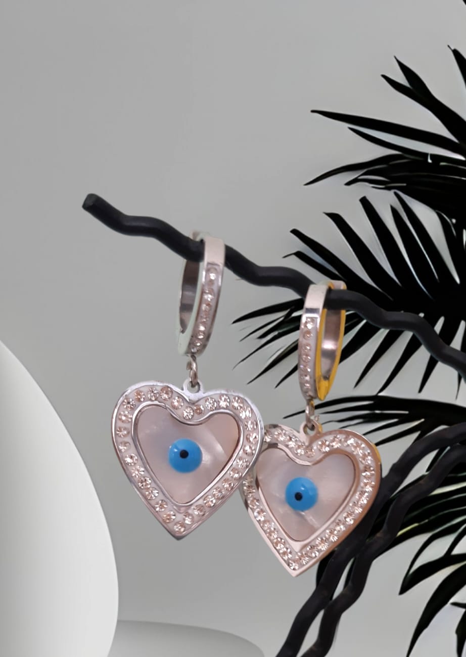 Orecchini a cerchietto con cuore e occhio portafortuna